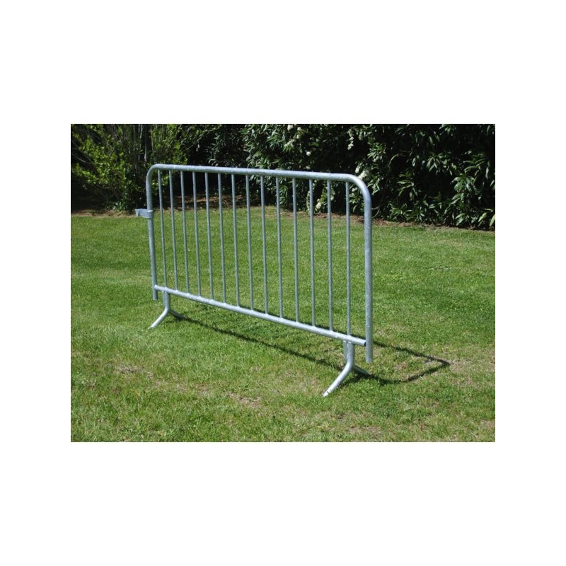 Pour la sécurité des personnes. En acier galvanisé à chaud. Cadre en tube Ø 35 mm. 14 barreaux Ø 16 mm (espacement 11 cm). Conforme aux normes de police en vigueur.