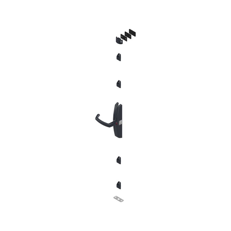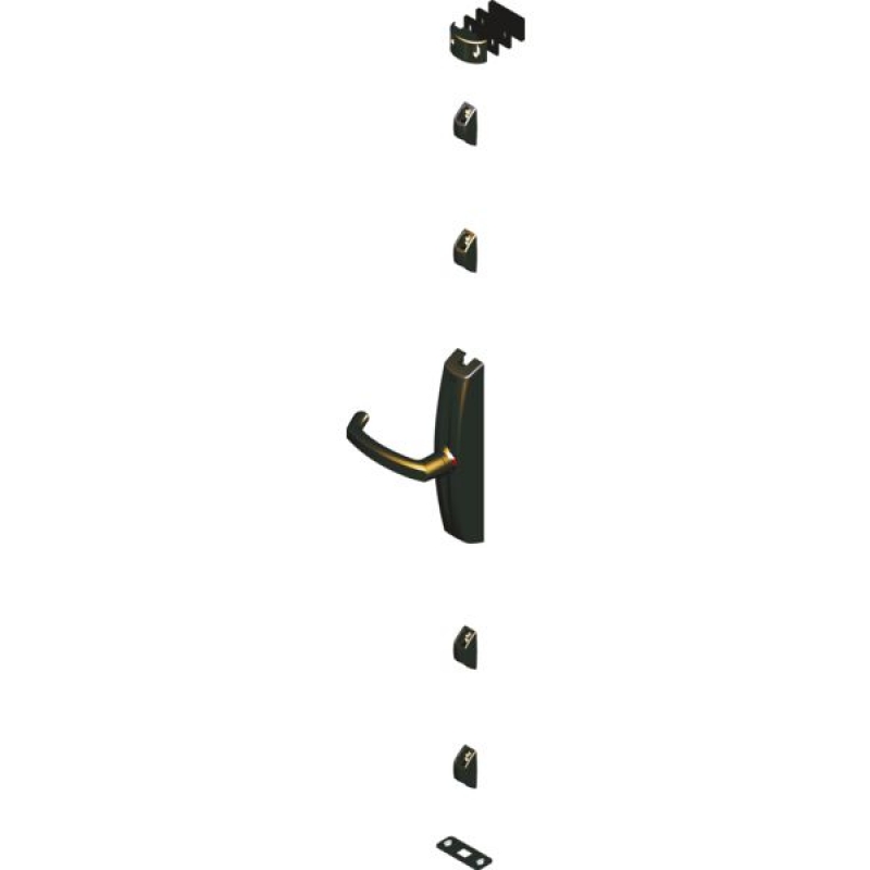 Pour tout type de porte bois, alu, pvc, acier montée sur pivot ou sur paumelles, n'excédant pas 200 kg et de dimensions inférieures ou égales à 2520 mm de haut et 1320 mm de large. Ouverture par rotation ¼ de tour. Visualisation ouvert/fermé par signalétique vert/rouge, manœuvrable de l'extérieur. Fournie à main gauche, inversion rapide du sens de la main lors du montage. Ensemble composé de : - 1 boîtier, - 4 guides de tringle, - 1 gâche basse, - 1 gâche haute avec cales, - cales. Conforme à la norme EN 179. Conditionnement : boite