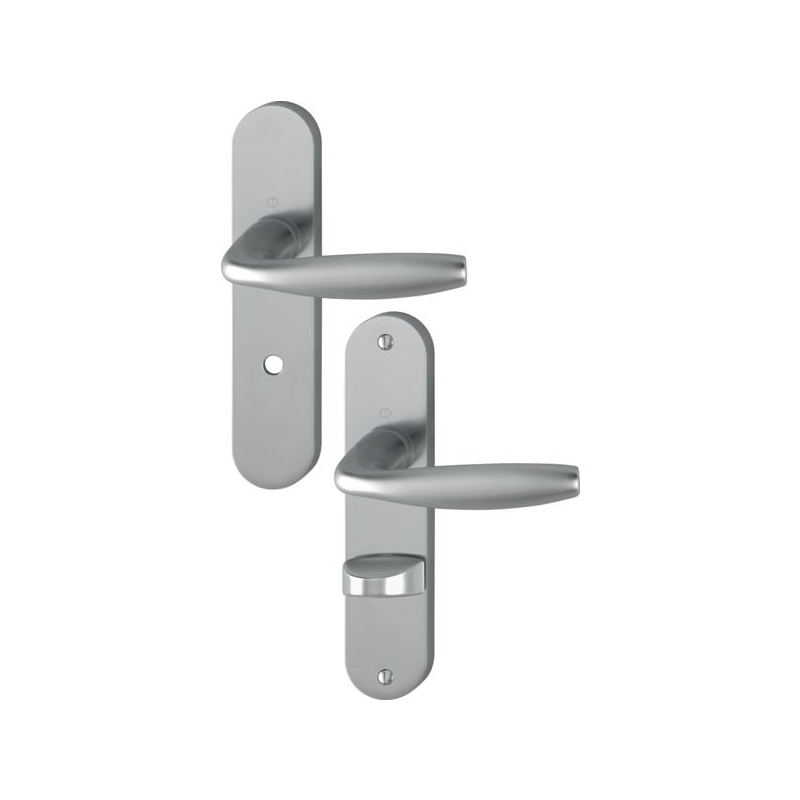 Pour porte intérieure d’épaisseur de 38 à 47 mm. Carré à montage rapide garantissant un montage simple, sans jeu, sans outil et durable. Plaque : 190 x 41 mm (pour entraxe 165 mm) et 234 x 39 mm (pour entraxe 195 mm) Entraxe de serrure : 70 mm Fouillot carré : 7 mm Longueur béquille : 127 mm Saillie de la béquille : 56 mm Finition : aluminium aspect inox Conditionnement : boîte