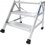 Usage adapté à l'industrie. En aluminium. Marches antidérapantes de 200 mm. Sabots enveloppants antidérapants. Charge maxi. : 150 kg Norme : EN 14183 - décret 96 333 Livré démonté.