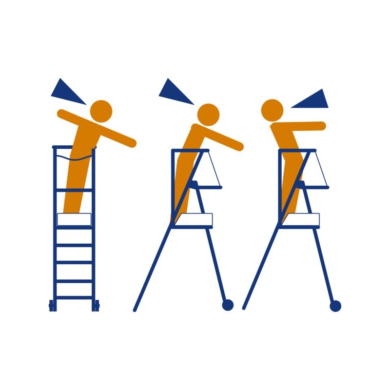 Utilisation sur sol plat. Usage intensif. En aluminium. Garde-corps fixe 360° avec portillon semi-automatique rigide. Plate-forme 400 x 490 mm avec plinthes intégrées. Marches striées antidérapantes de 60 mm. Tablette porte-outils. 2 roulettes Ø 100 mm pour les déplacements. Béquille arrière adaptée pour le passage des WC (sauf modèle 2 marches). Modèles 4 et 5 marches avec stabilisateurs. Charge maxi. : 150 kg Norme : PIRL NFP 93353 - Décret 2004.924